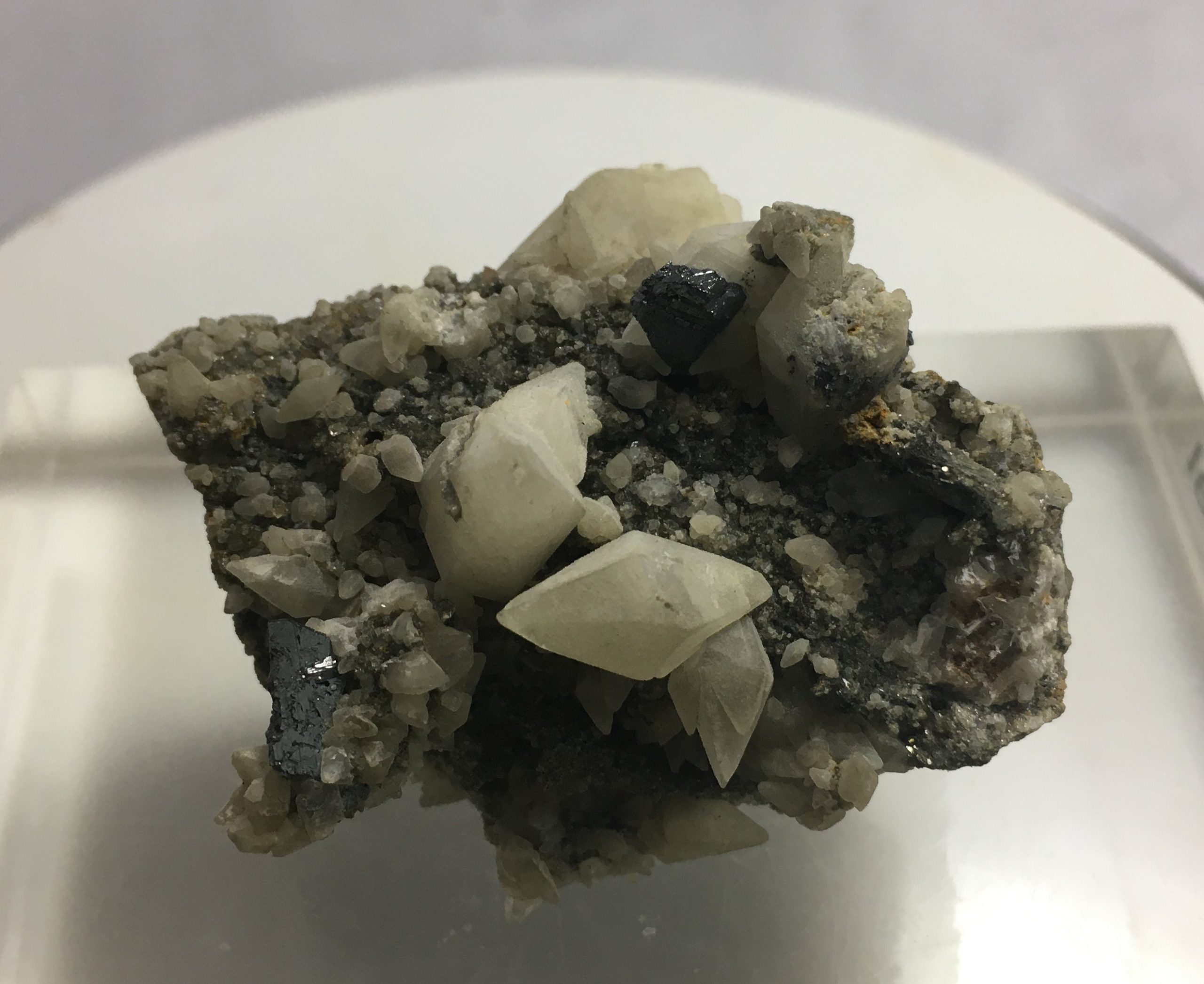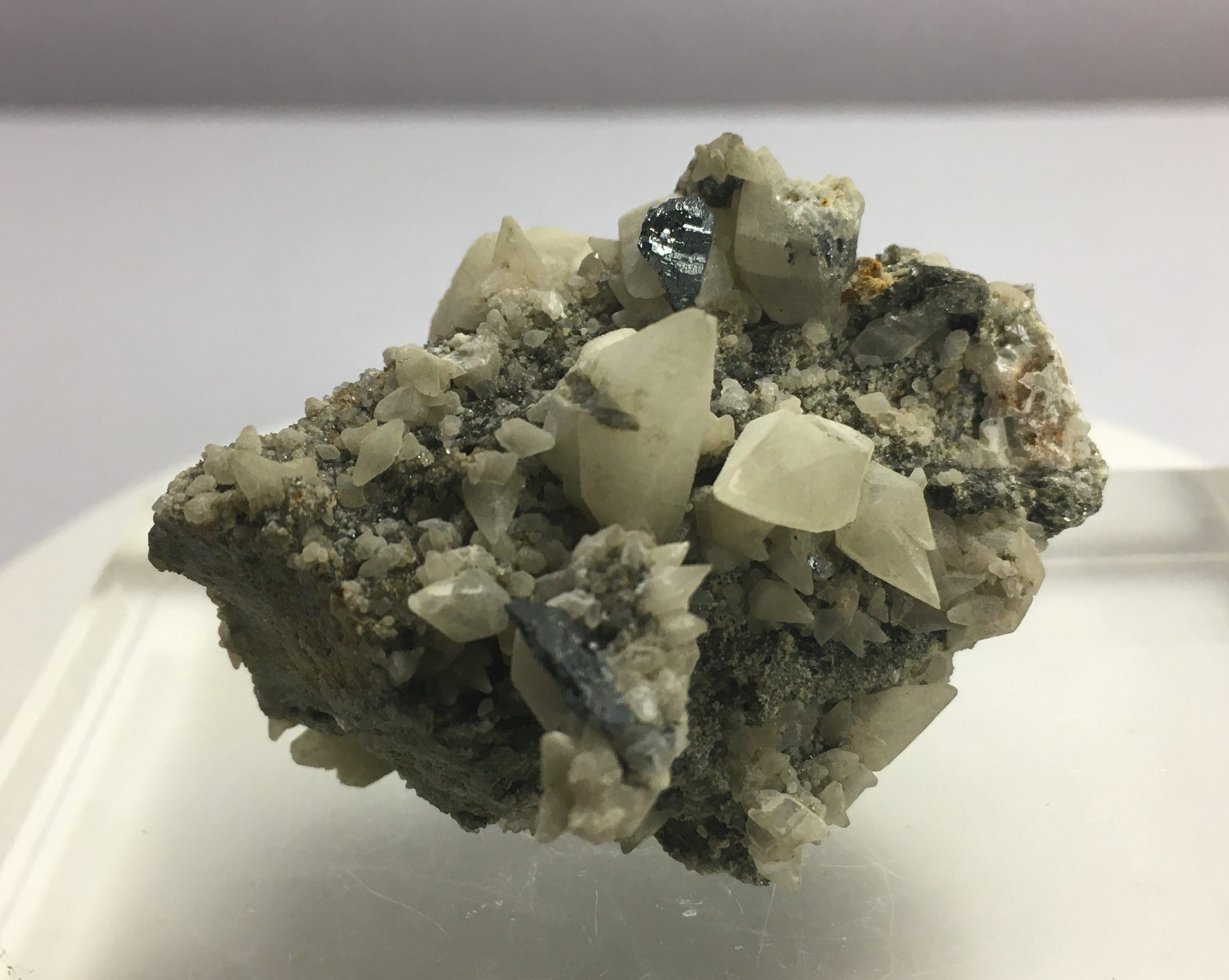Schlagwörter: Calcit, Eisenrose, Hämatit, Kristall, Stufe, Tirol, Zillertal