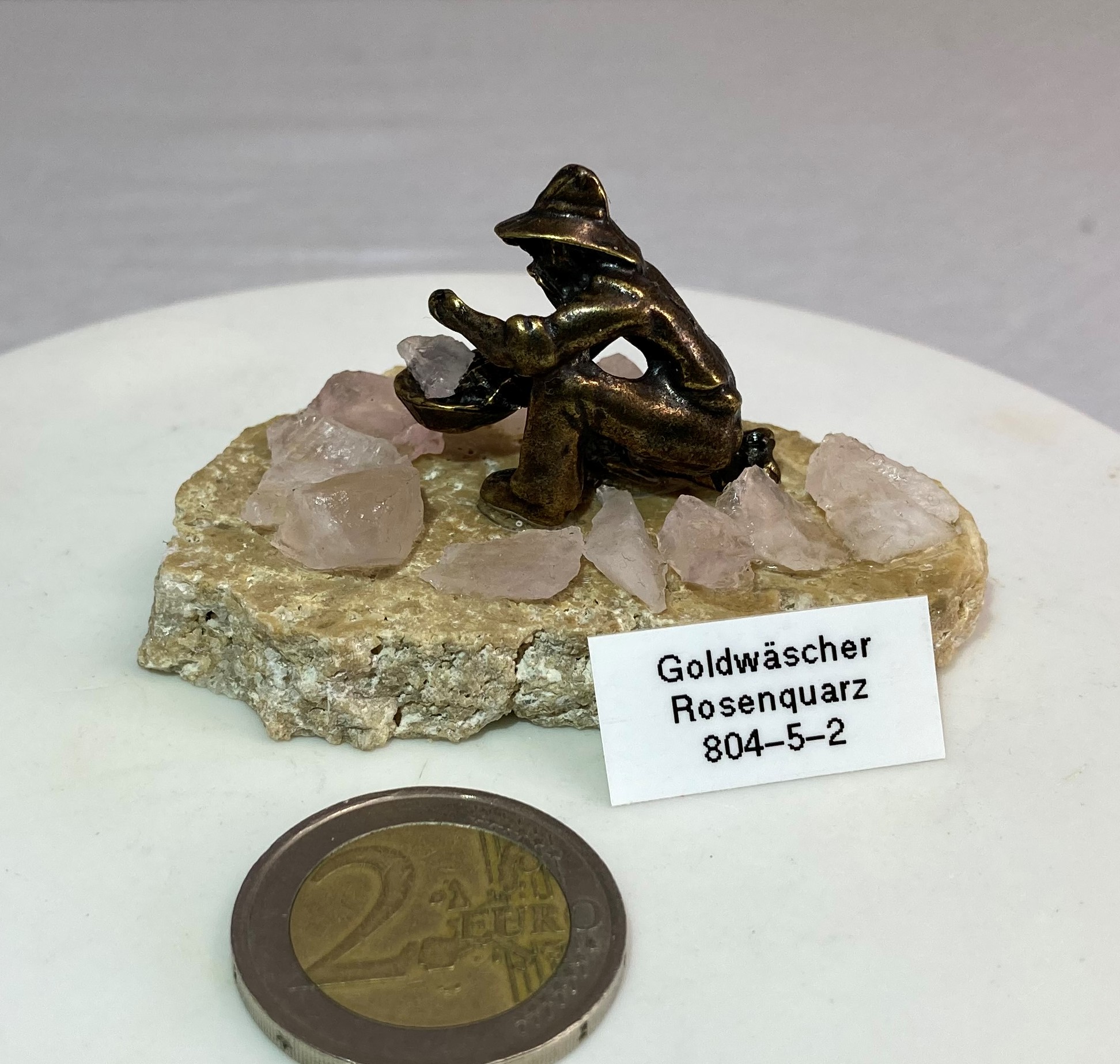 1 Goldwäscher. Mit Rosenquarz. Die Figur ist aus Messing.